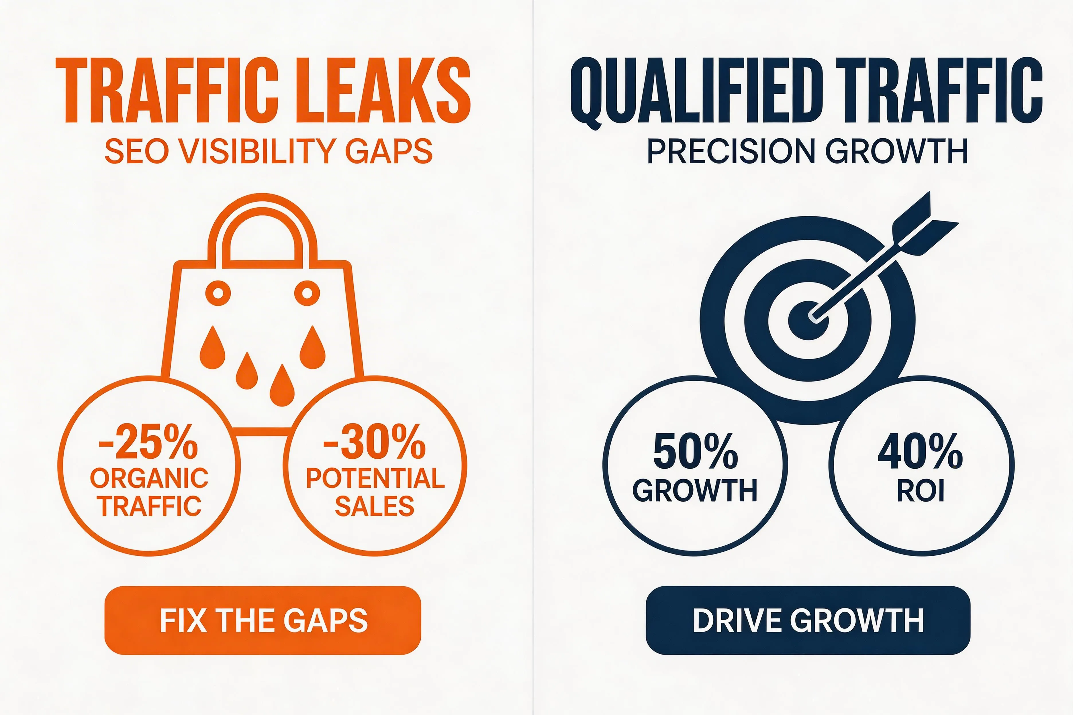 Technical Performance: We fix slow load times to prevent the 32% bounce rate increase caused by site lag.