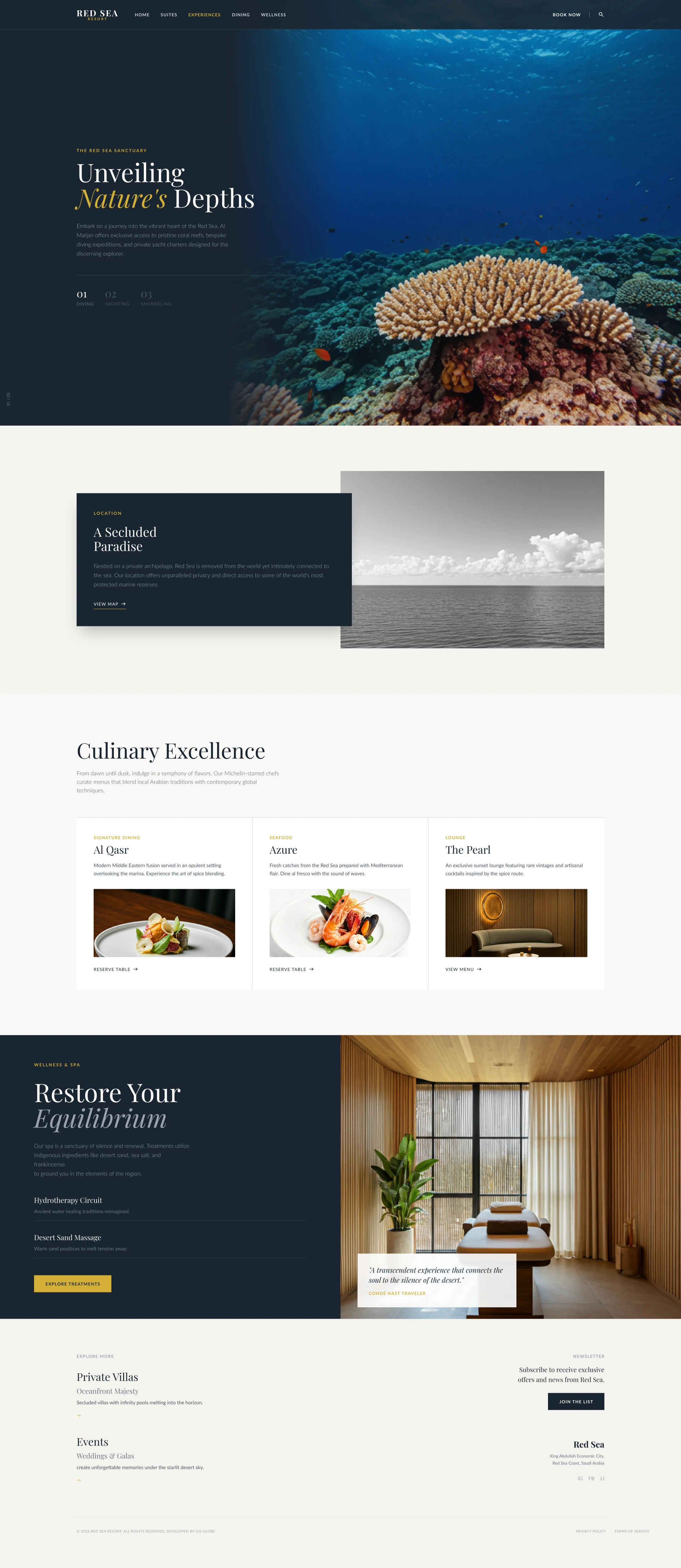 The Red Sea project represents a new standard in ultra-luxury hospitality, blending pristine nature, architectural excellence, and curated guest experiences. To support this vision, a digital platform was required that reflects serenity, exclusivity, and premium positioning—while guiding users seamlessly from inspiration to booking.